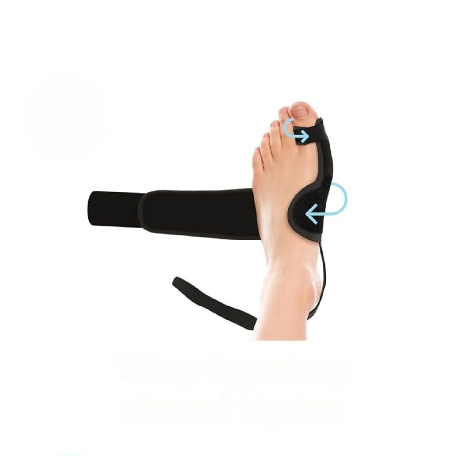 The brace gradually guides your big toe toward better alignment, retraining the joint for long-term stability and balance.